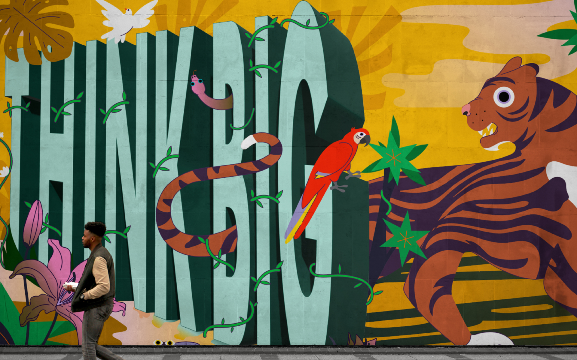 Led by our head of illustration, Jade Klara, the work plays across walls with colour rich storytelling.